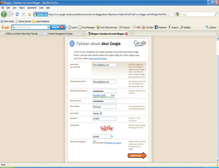 setelah semua data kita isi, jangan lupa untuk mencentang kotak SAYA MENERIMA PERSYARATAN dan LAYANAN